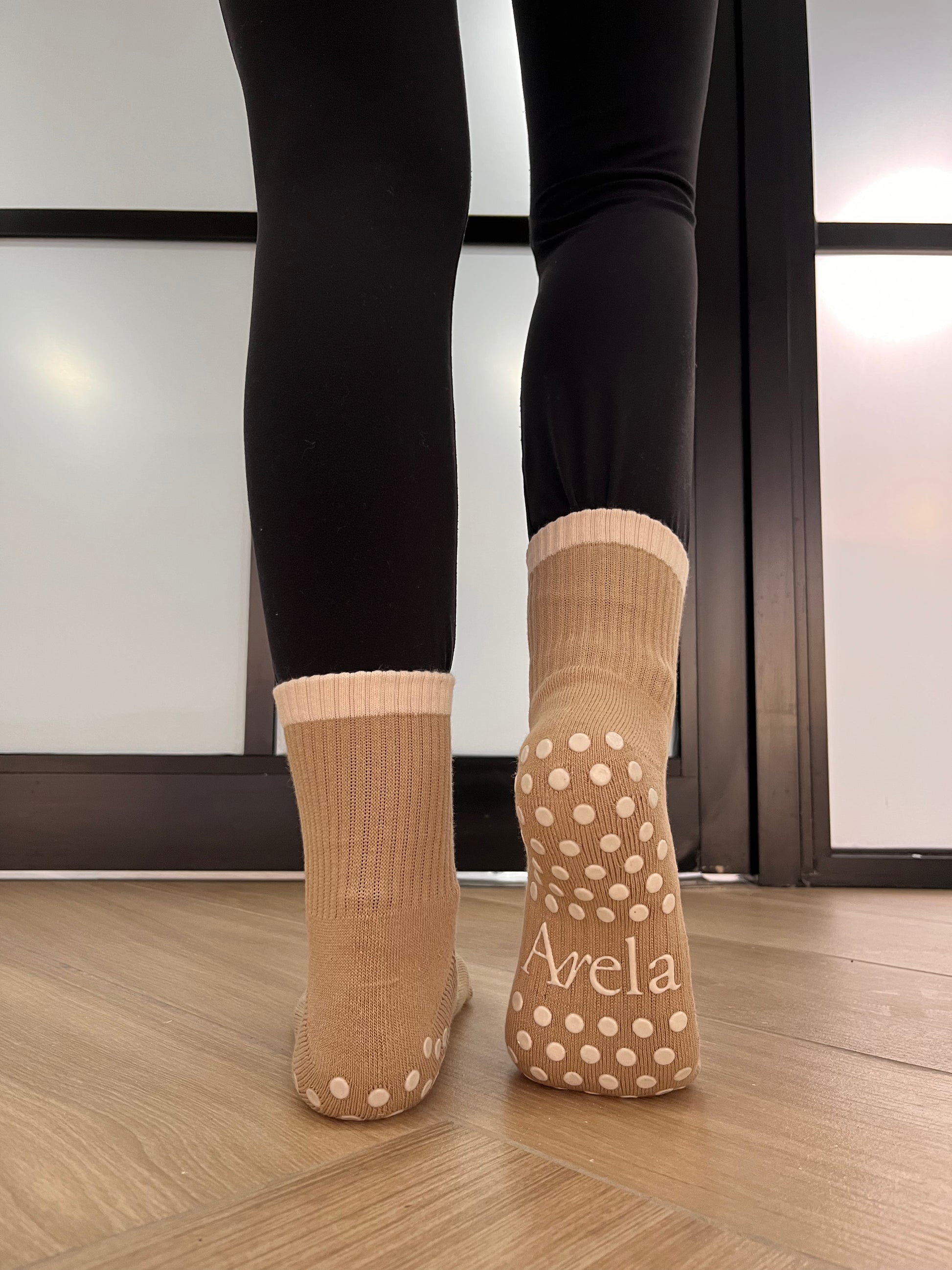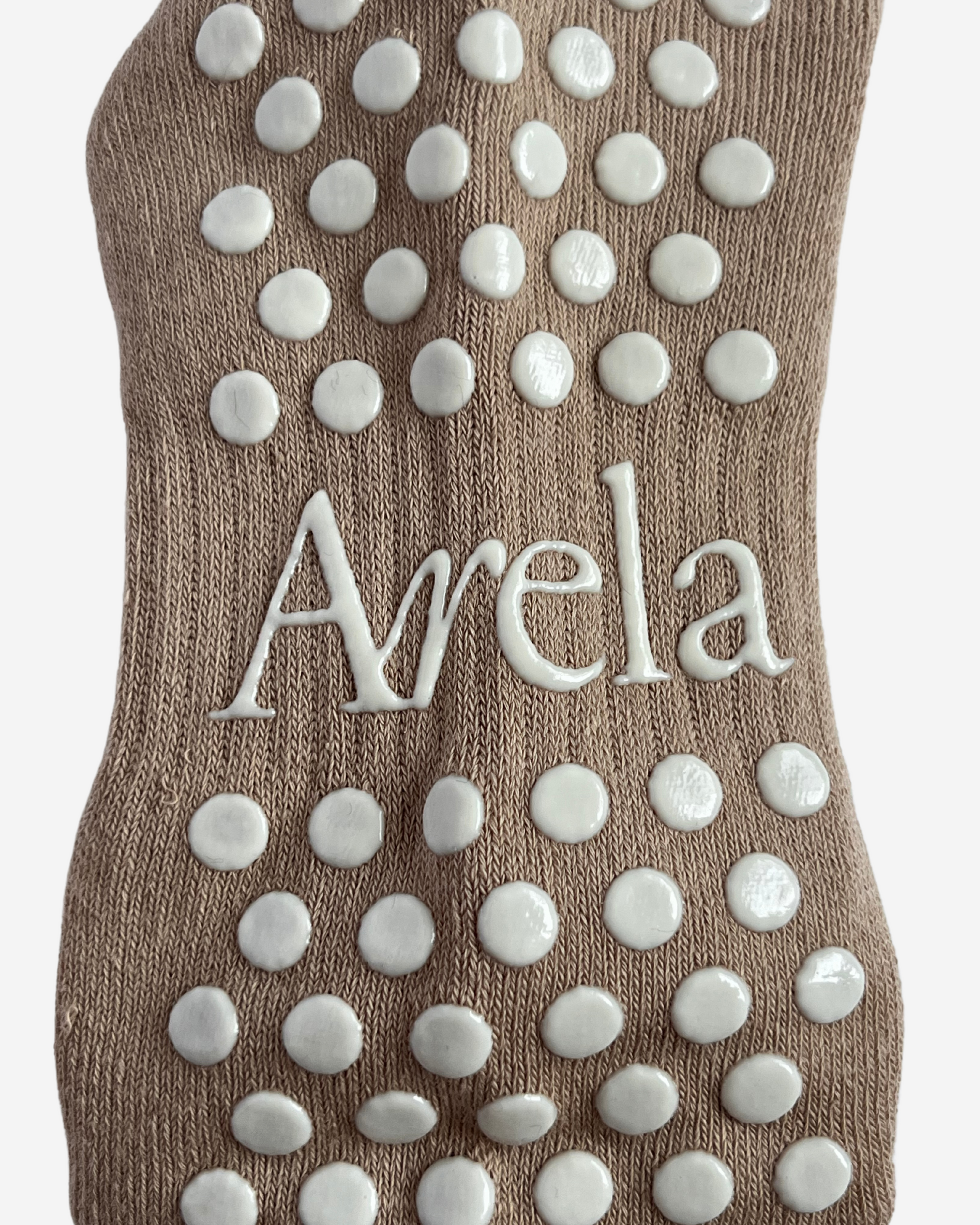 Diseñadas para acompañarte en cada paso, nuestras Arela Grip Socks combinan funcionalidad, diseño y comodidad. Con su suela antideslizante de agarre premium, ofrecen el soporte ideal para tus prácticas de pilates, yoga o cualquier entrenamiento consciente.