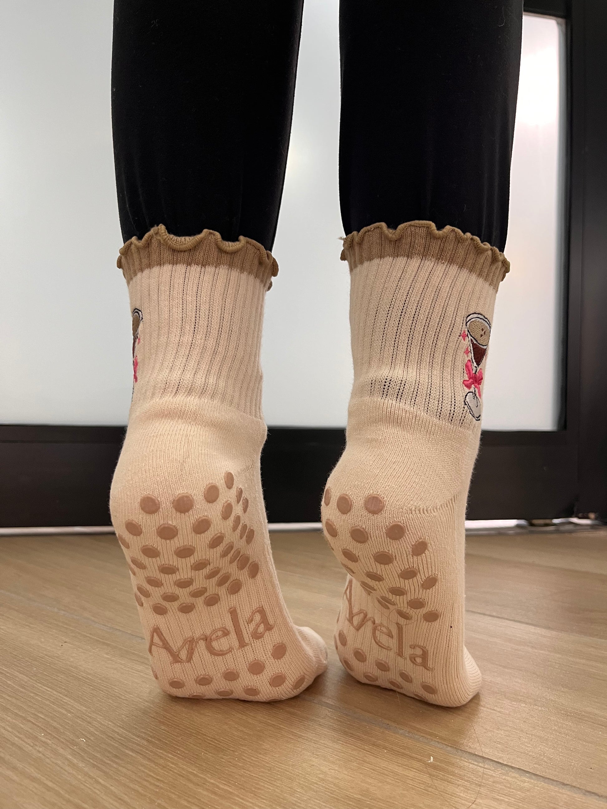 Diseñadas para acompañarte en cada paso, nuestras Arela Grip Socks combinan funcionalidad, diseño y comodidad. Con su suela antideslizante de agarre premium, ofrecen el soporte ideal para tus prácticas de pilates, yoga o cualquier entrenamiento consciente.